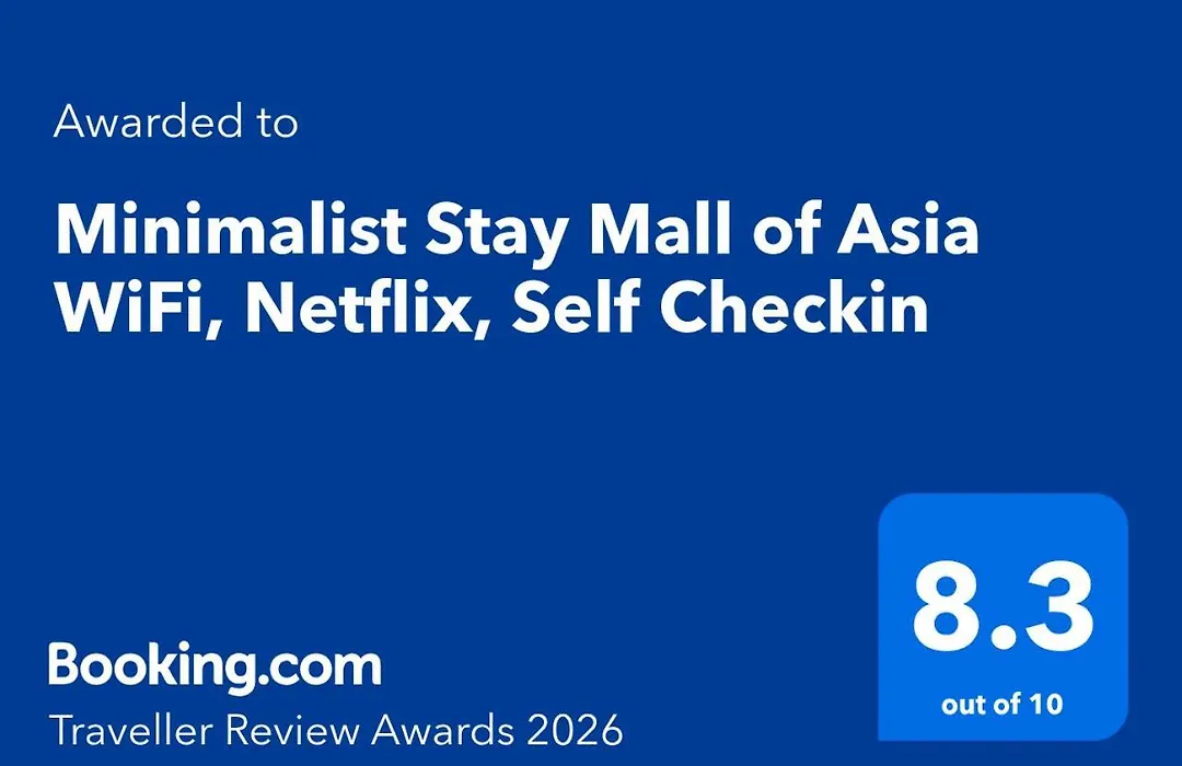 ベッドルーム1室のMinimalist Stay Mall Of Asia Wifi, Netflix, Self Checkin マニラ市アパートは、F45 Training MOA Complexから歩いてわずか5分で、ニノイ・アキノ国際空港から5キロメートルの場所にあります。